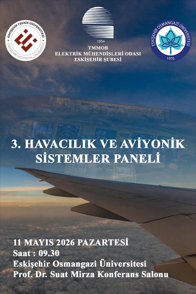 TMMOB Elektrik Mühendisleri Odası Eskişehir Şubesi, Eskişehir Teknik Üniversitesi ve Eskişehir Osmangazi Üniversitesi iş birliği ile düzenlenen 3. Havacılık ve Aviyonik Sistemler Paneli sizlerle buluşuyor!
